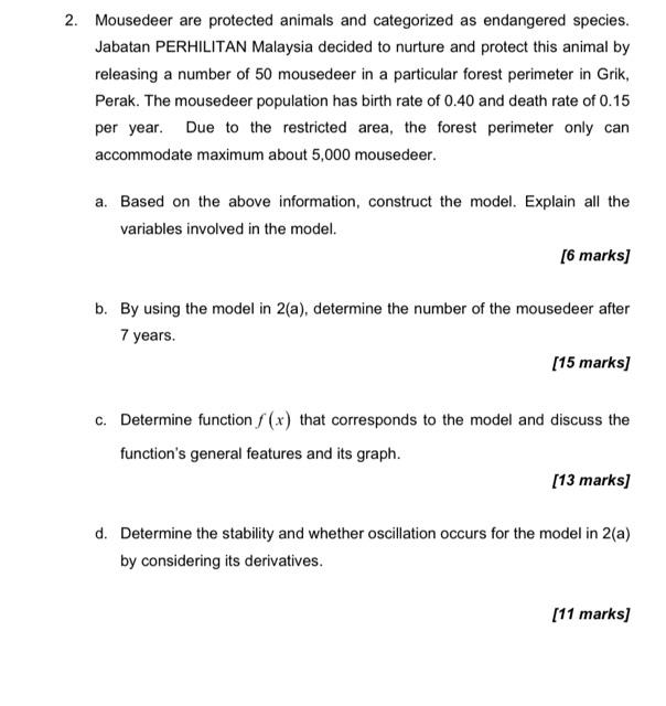 Solved Mousedeer Are Protected Animals And Categorized As Chegg Com